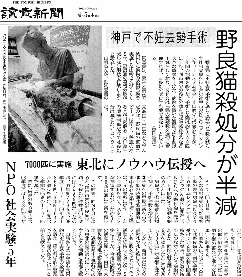 などの社会実験で実践した。結果:神戸市|飼い主不明仔猫の処分数分数はこちら>