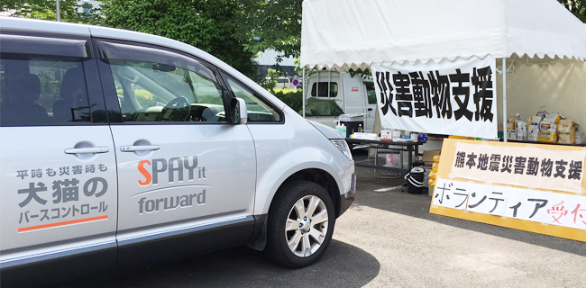 7月に入っても避難所の中学校にいる飼い主と離れ、犬は校庭の車の中で夜を過ごすという。昼は倒壊した家の片づけのため飼い主に連れられ一時帰宅していた。現地の救護本部(熊本県、熊本市、熊本県獣医師会)に確認すると、この事実すら把握していない。テレビ、新聞を見て寄付してしまうと、義援金のほとんどはこうした調査しない組織に流れる。