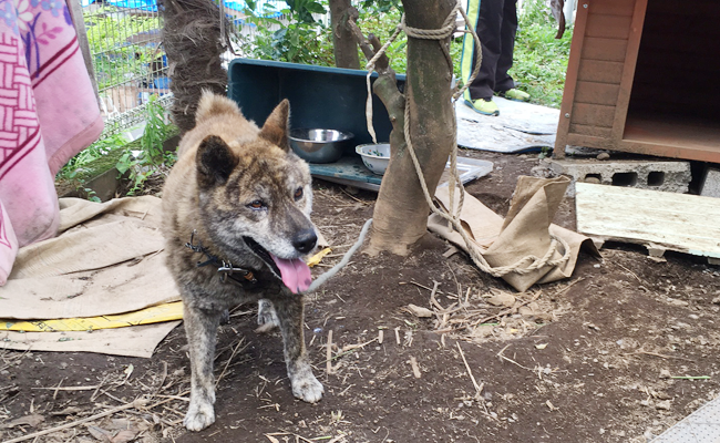 6月末の大雨で村のペット犬が生き埋めになった。この犬は運よくボランティアの管理下にあった。訪問当日、犬のリードは木に巻きついていた。雷などによる犬のパニック、あらゆる危険を想定して環境を改善するよう助言する。放置された犬猫のため、やれることは山積している。
